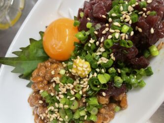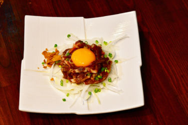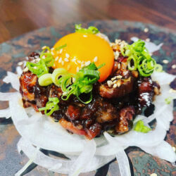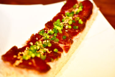 酢飯にアボカドとユッケ肉を盛り付けた贅沢なお寿司。見た目も結構ボリュームありますが、さっぱりした酢飯、トロっとしたアボカド、細かく切られたユッケの旨味の絶妙なハーモニーで、ペロリと食べられてしまいます 。