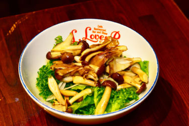 あっつあつにグリルしたきのこと、冷たいサラダが意外なマッチ。サラダ部門で隠れた人気を誇るスター選手です。
