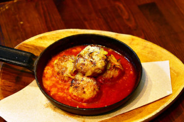 まるごとトマトをどーんと配置したトマトサラダです。さわやかでみずみずしいトマトとサラダとハニーマスタードドレッシングの組み合わせで、さっぱりだけどしっかり食べ応えな一品になってます。